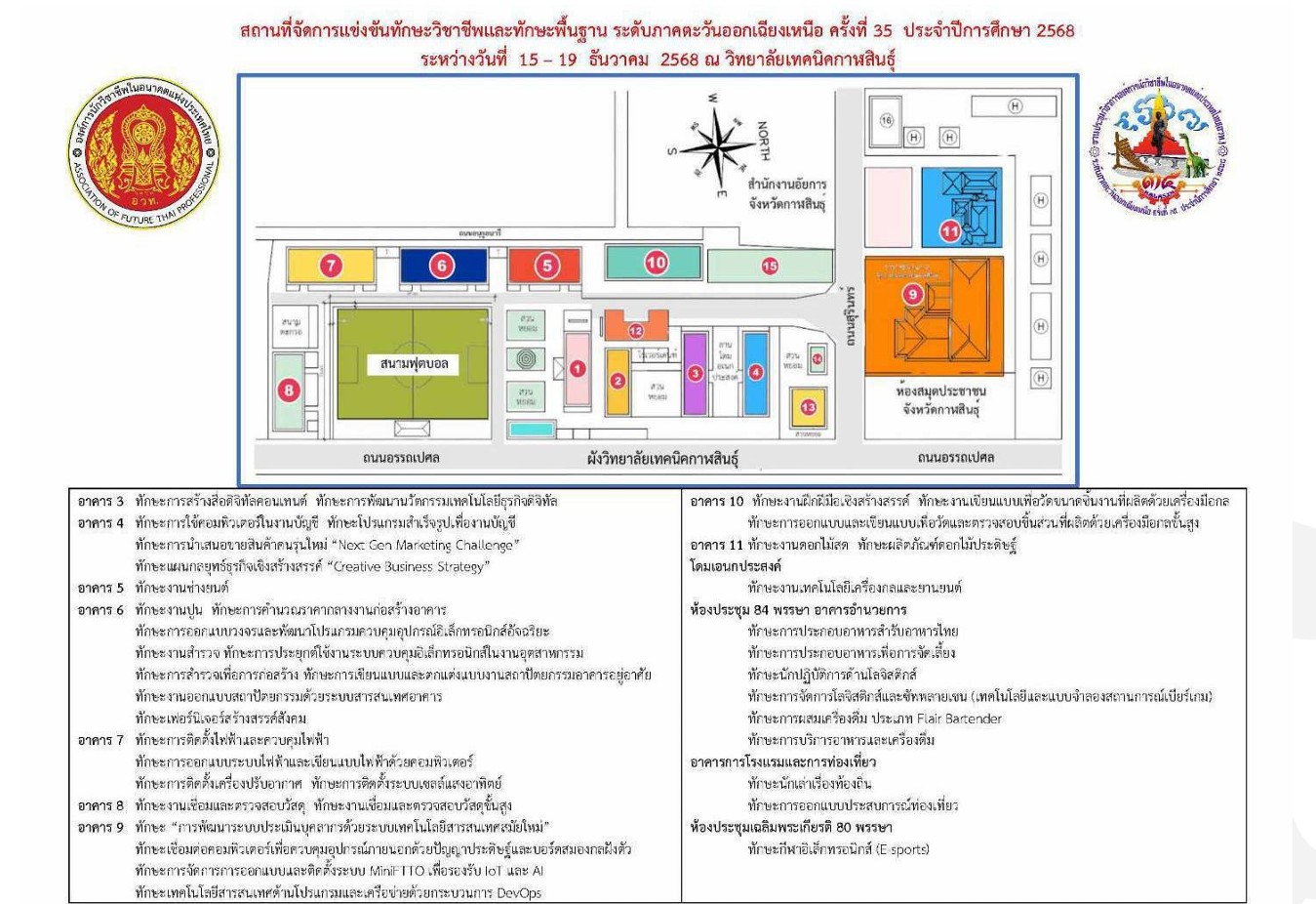 แผนผังสถานที่แข่งขันทักษะวิชาชีพ และทักษะพื้นฐาน งานประชุมวิชาการองค์การนักวิชาชีพในอนาคตแห่งประเทศไทย (อวท.) ระดับภาคตะวันออกเฉียงเหนือ ครั้งที่ ๓๕ วิทยาลัยเทคนิคกาฬสินธุ์ , วิทยาลัยการอาชีพกาฬสินธุ์ , วิทยาลัยอาชีวศึกษากาฬสินธุ์